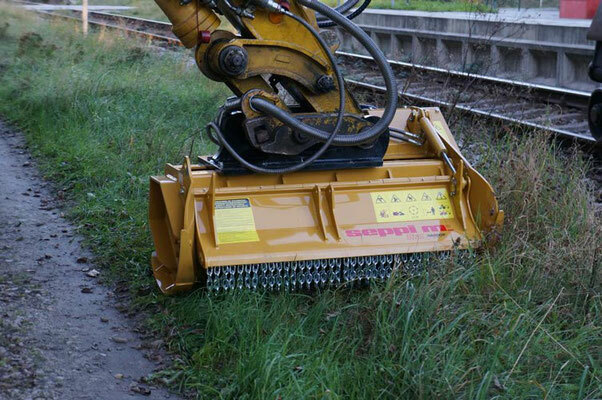 Der BMS-F ist ein leichter und hochfester Mulchkopf. Dieses Modell wurde speziell für die Vegetationskontrolle der Bahnindustrie konzipiert und kommt dabei mit Spezialfahrzeugen zum Einsatz. An dessen Baggerarmen sorgt er für die Grünpflege entlang der Bahnstrecken und mulcht Material bis zu 20 cm im Durchmesser. Der Rotor des BMS-F wurde eigens für starke seitliche Belastungen entwickelt und arbeitet zuverlässig auch in vertikalen Positionen. Für den Antrieb steht ein breites Sortiment an Motoren zur Verfügung.