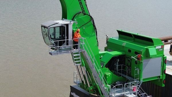Der SENNEBOGEN 885 G steht für modernste Technik im Hafeneinsatz. Mit einem Einsatzgewicht von bis zu 320 t und einer Reichweite von bis zu 38 m überzeugt die Umschlagmaschine insbesondere in Binnenhäfen durch höchste Präzision und schnelle Arbeitszyklen im Stück- und Schüttgutumschlag. Das bewährte Energierückgewinnungssystem Green Hybrid sorgt dabei selbst bei anspruchsvollen Einsätzen für einen besonders effizienten und wirtschaftlichen Betrieb.